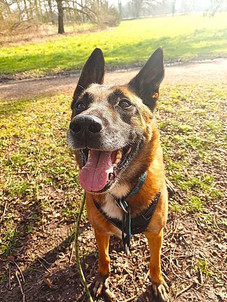Il est sociable avec ses congénères et peut croiser sans souci en balade des chiens de toutes tailles et sexes. Nous préférons toutefois qu'il vive seul dans son foyer, car comme la plupart des malinois il contrôle beaucoup les déplacements, et la présence d'un chien ne l'aide pas à se poser.